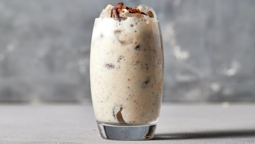 Wenn du dir fünf Minuten mehr im Bett gönnen willst, dann ist dieses Frühstück optimal für dich. Wirf alle Zutaten in einen Mixer, gib deine Toppings oben drauf und fertig.
