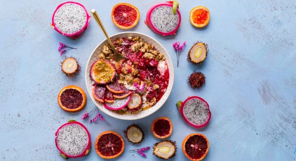 Die Art und Weise in der das Obst präsentiert ist, kann große Auswirkungen darauf haben, wie ansprechend dein Mittagessen auf dich wirkt. In den Bildern auf Instagram oder Pinterest, die uns das Wasser im Mund zusammenlaufen lassen, ist das Obst in der Regel aufgeschnitten. Da wird selbst die gewöhnlichste Orange, wenn sie zerteilt und gestückelt daliegt, zum tropischen Hingucker