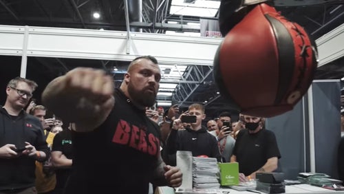 Eddie Hall zerstört Punch Bag Maschine mit einem gewaltigen rechten Haken