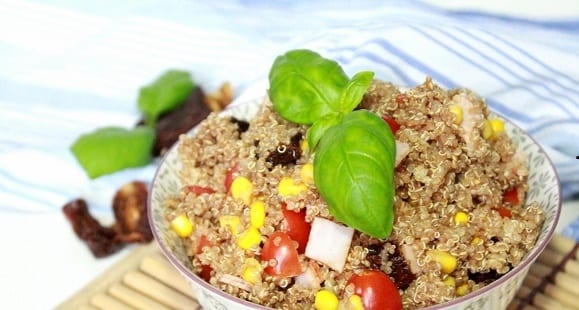 3. Füllt den Quinoa in eine Schüssel und gebt den Balsamicoessig dazu