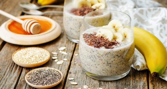- Gib alles in eine Schüssel hinein und füge die Chiasamen oben drauf.