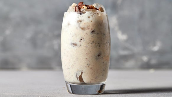 In der Zwischenzeit in einer großen Rührschüssel Haferflocken, Vanille-Protein, Backpulver und Salz vermischen. Die Milch unterrühren.