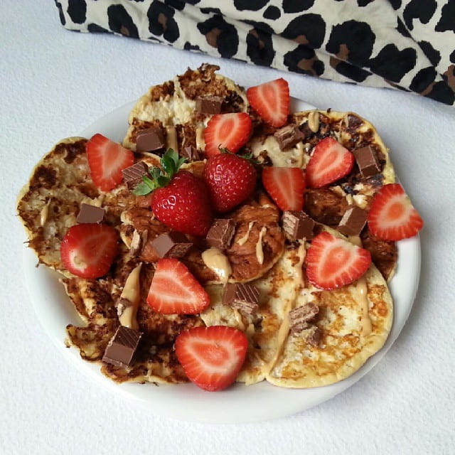 - Mit einem Esslöffel zwei volle Löffel in eine gefettete Pfanne geben. Die Pancakes wenden sobald sich an der Oberfläche kleine Bläschen bilden.