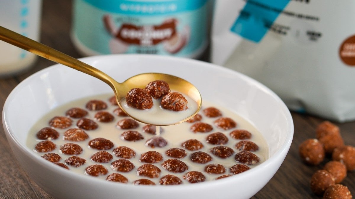 Gib alle Bällchen in eine Fritteuse und backe sie 10 Minuten lang bei 180 °C. Das Ergebnis sollten superleichte und knusprige Kakaobällchen sein, die auch dann noch knusprig bleiben, wenn die Milch hinzugefügt wurde!