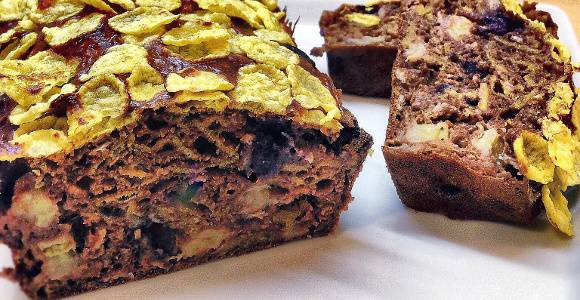 - Masse in eine Backform füllen und die Cornflakes darauf verteilen.