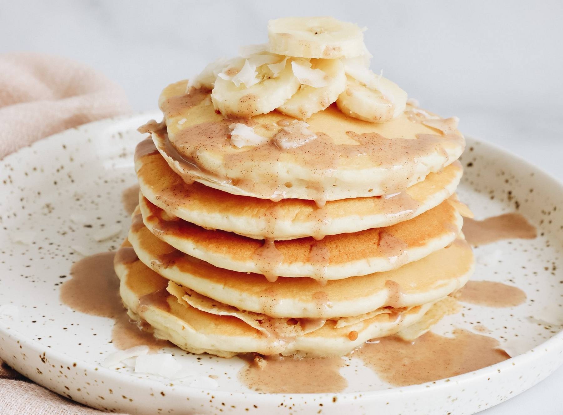 Gib die fertigen Pancakes auf einen Teller und wiederhole den obigen Schritt so lange, bis der Teig alle ist.