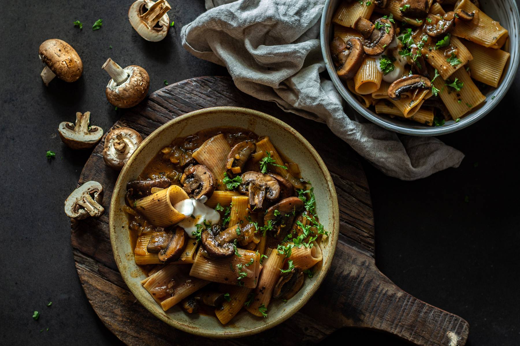 Wir haben uns für Champignions und Fusilli entschieden, aber natürlich steht es dir freie mit anderen Pilz- und Pastasorten sowie Gewürzen herumzuexperimentieren.