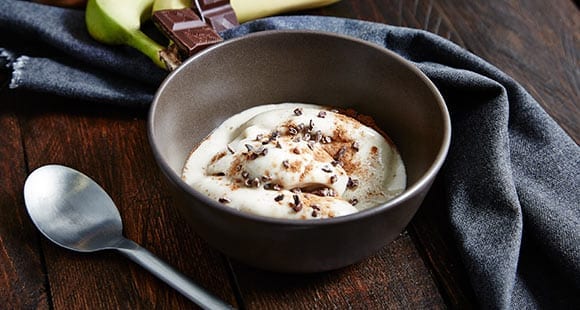 - Gib das Bananen Eis in eine Schüssel, garniere nun mit MySyrup und deinem Lieblingstopping!