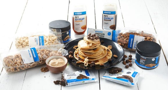 - Zuerst gibst du die Milch in deinen Myprotein Shaker. Füge 2 Scoops vom Protein Pancake Mix hinzu.