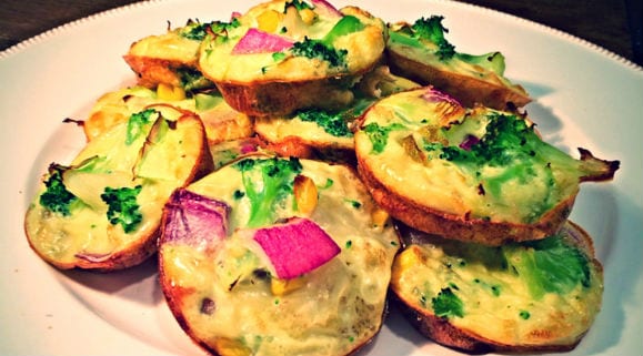 - Als nächstes nimmst du eine Muffinform zur Hand und fügst die Gemüsestücke hinein.