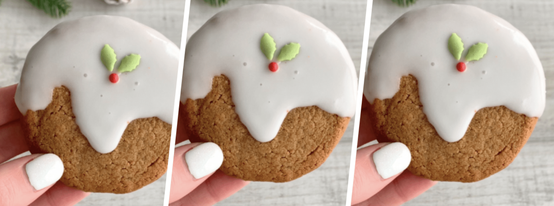 Die Kekse schmecken pur, aber sie werden noch besser, wenn du sie mit ein wenig zusätzlicher Dekoration und Zuckerguss veredelst. Alles, was du hierfür tun musst, ist, einen Klecks dicken weißen Zuckerguss auf die obere Hälfte zu geben und mit Streuseln oder bunten Zuckergussstiften einen Stechpalmenzweig zu gestalten. Einfach zauberhaft.