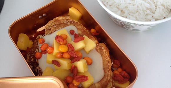 - Serviere die Pancakes mit Früchten oder anderen Köstlichkeiten, nach denen dir die Laune steht.