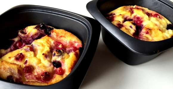 - Nun kannst du entscheiden, ob du den Auflauf mit den Beeren toppen willst, oder ob du sie pürierst und als Sauce servierst