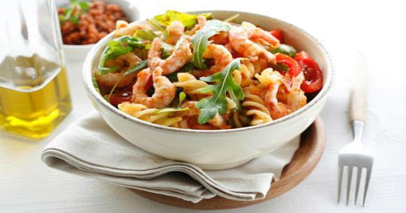 - Um den Proteingehalt zu erhöhen, kannst du wahlweise mehr Garnelen oder Protein Pasta nutzen oder einfach einen gepflegten Impact Whey Proteinshake dazu trinken.
