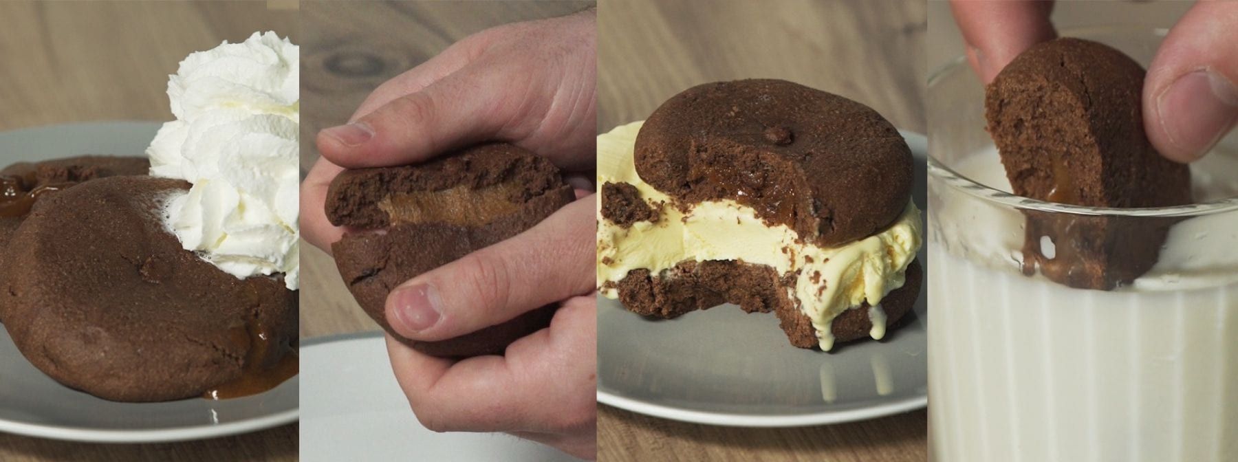 - Erhitze die Cookies für 15-30 Sekunden in der Mikrowelle und garniere sie anschließend mit etwas Spritzsahne, um eine köstlichen, warmen und karamellhaltigen Snack zu genießen.