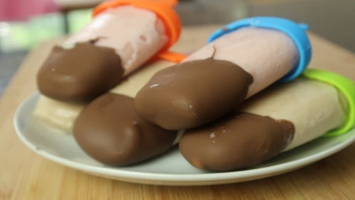 - Mache das Sandwich komplett, indem du einen zweiten Cookie auf die Eiskugel gibst. Drücke hierzu den zweiten Cookie fest drauf.