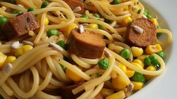- - Alternativ zum Gemüse kannst du zu dem Gericht auch einen knack-frischen Salat mit Gurken, Tomaten, Zwiebeln, Eisbergsalat o.ä. anrichten.