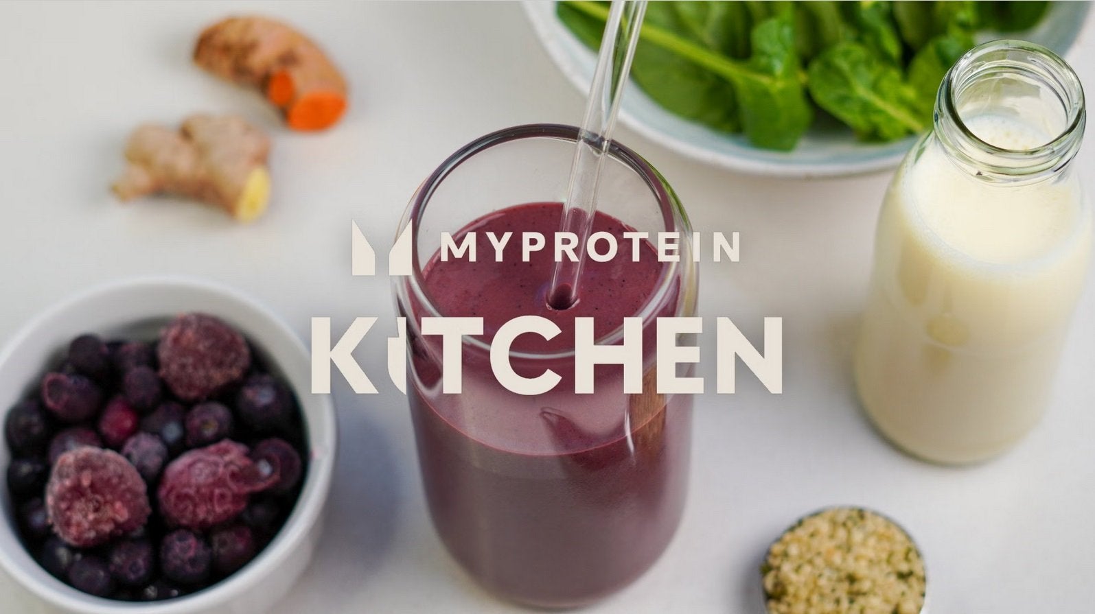 Gieße den Smoothie in ein Glas oder deinen Shaker und genieße ihn daheim oder unterwegs.