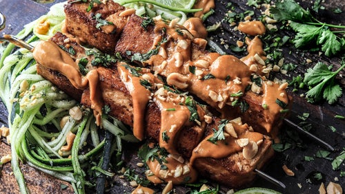 Vegane Erdnuss Tofu Spieße | Meal Prep Rezept