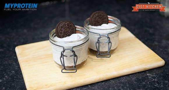 - Fülle die Gläse mit der Oreo-Basis mit der Creme auf und stelle sie über Nacht in den Kühlschrank. Bevor du dich über das High Protein Oreo Cheesecake Frühstück hermachst, kannst du je 1 Oreo-Kekse als Topping zum „dippen“ verwenden.
