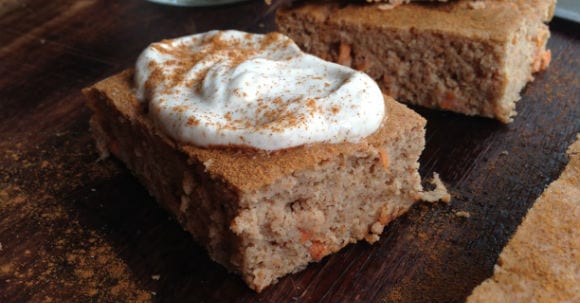- Gebt den Teig auf das Backblech und verstreicht alles gleichmäßig. Der Karotten Gewürzkuchen wird nun bei 180 °C für 25-35 Minuten gebacken (bzw. so lange, bis der Zahnstocher sauber wieder herauskommt, wenn ihr ihn in den Kuchen piekst)