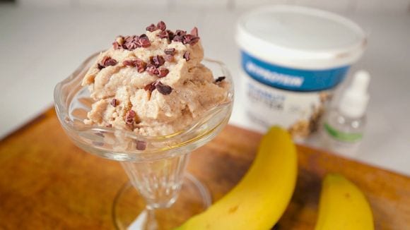 Zum sofortigen Servieren einen Esslöffel unserer fettarmen Erdnussbutter in Pulverform mit ein paar Esslöffeln Wasser vermischen und darüber geben. Mit einer in Scheiben geschnittenen Banane und Chiasamen bestreuen. Köstlich.