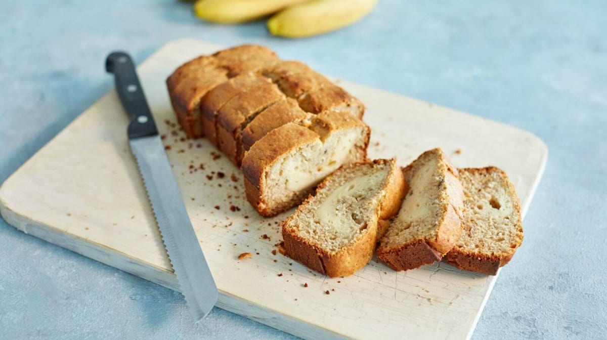 - Lasse das gefüllte Bananenbrot für zirka 15 Minuten abkühlen, ehe du es anscheidest und servierst.