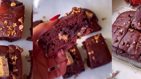 - Zum Schluss schneidest du mit einem Messer oder zerkrümelst mit deinen Händen die Oreo Kekse über dem Pancake Turm und gibst oben drauf noch etwas von dem MySyrup!