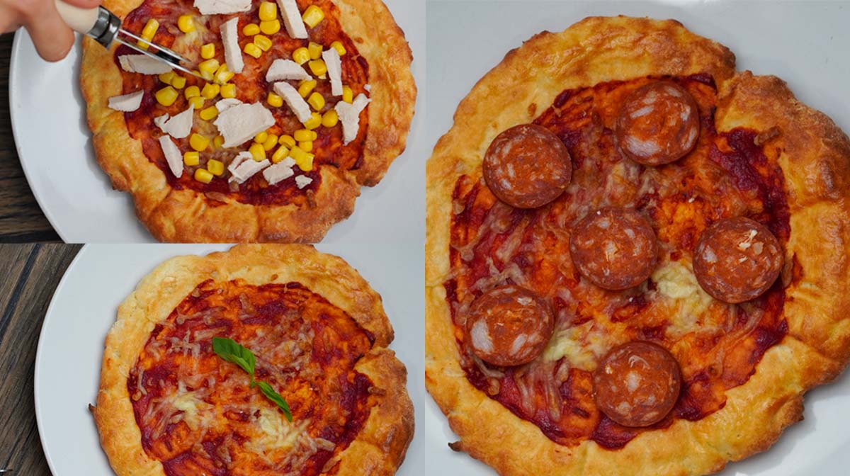 ist eines dieser Rezepte. Wer hätte gedacht, dass man mit nur 3 einfachen Zutaten einen gesunden Pizzaboden zaubern kann, der dann in nur 5 Minuten fertig ist?Mit nur Mehl, Salz und fettarmen, griechischem Joghurt für den Teig beweist Flo, dass es durchaus möglich ist, Pizza in den wöchentlichen Speiseplan einzubauen, ohne dass du dir Sorgen machen musst, dass deine Makronährstoffzufuhr darunter leidet. Ganz zu schweigen von den beeindruckenden 24g Protein pro Variante - was für eine klassisches "Cheat-Meal" doch ziemlich gut ist, oder?