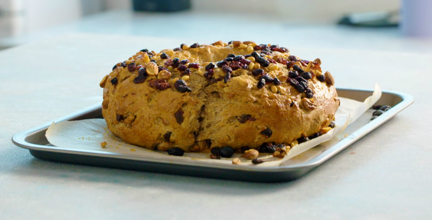...der Bolo Rainha. Mit Mandeln, Walnüssen und Pinienkernen, die für ein herrliches Knuspererlebnis sorgen und schmackhaften Sultaninen wird dieser Weihnachtskuchen garantiert die Hauptrolle in deinem Weihnachtsbuffet spielen.