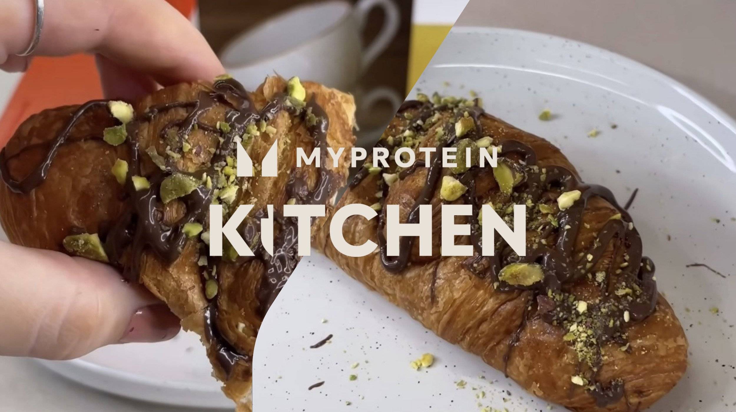 Genieße das Protein Croissant mit Pistazienfüllung so lange es noch warm ist.