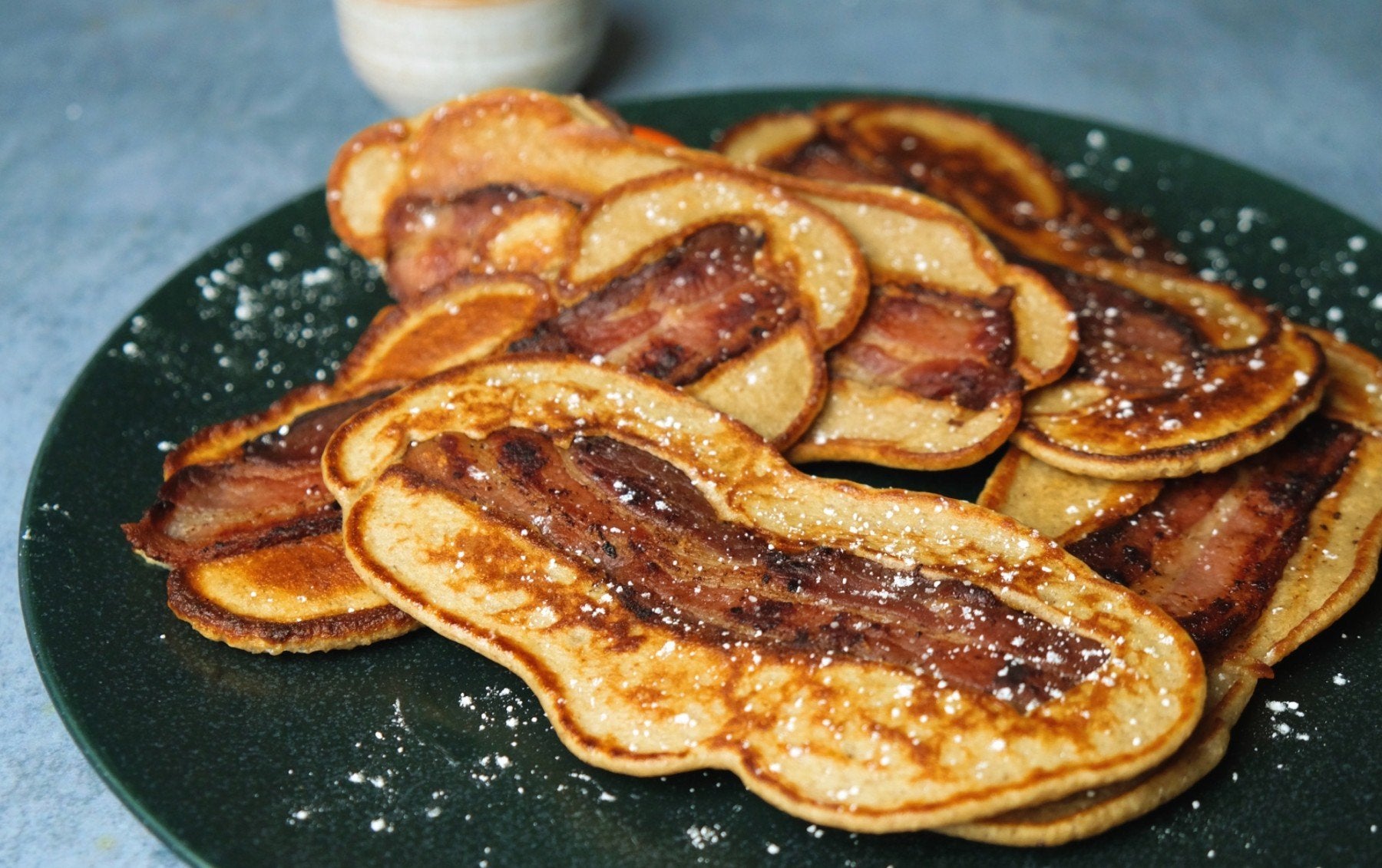 Warum solltest du dich mit gewöhnlichen Pancakes begnügen, wenn du diese magischen Pancake Dipper mit Bacon in der Mitte kreieren und sie dann anstelle von Messel und Gabel zu verwenden, um sie in so viel zuckerfreiem Sirup wie möglich zu ertränken? Absolut phänomenal!