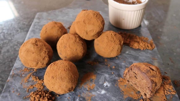 - Spieße jedes Bällchen auf einen Zahnstocher auf und dippe es in die geschmolzene Schokolade.