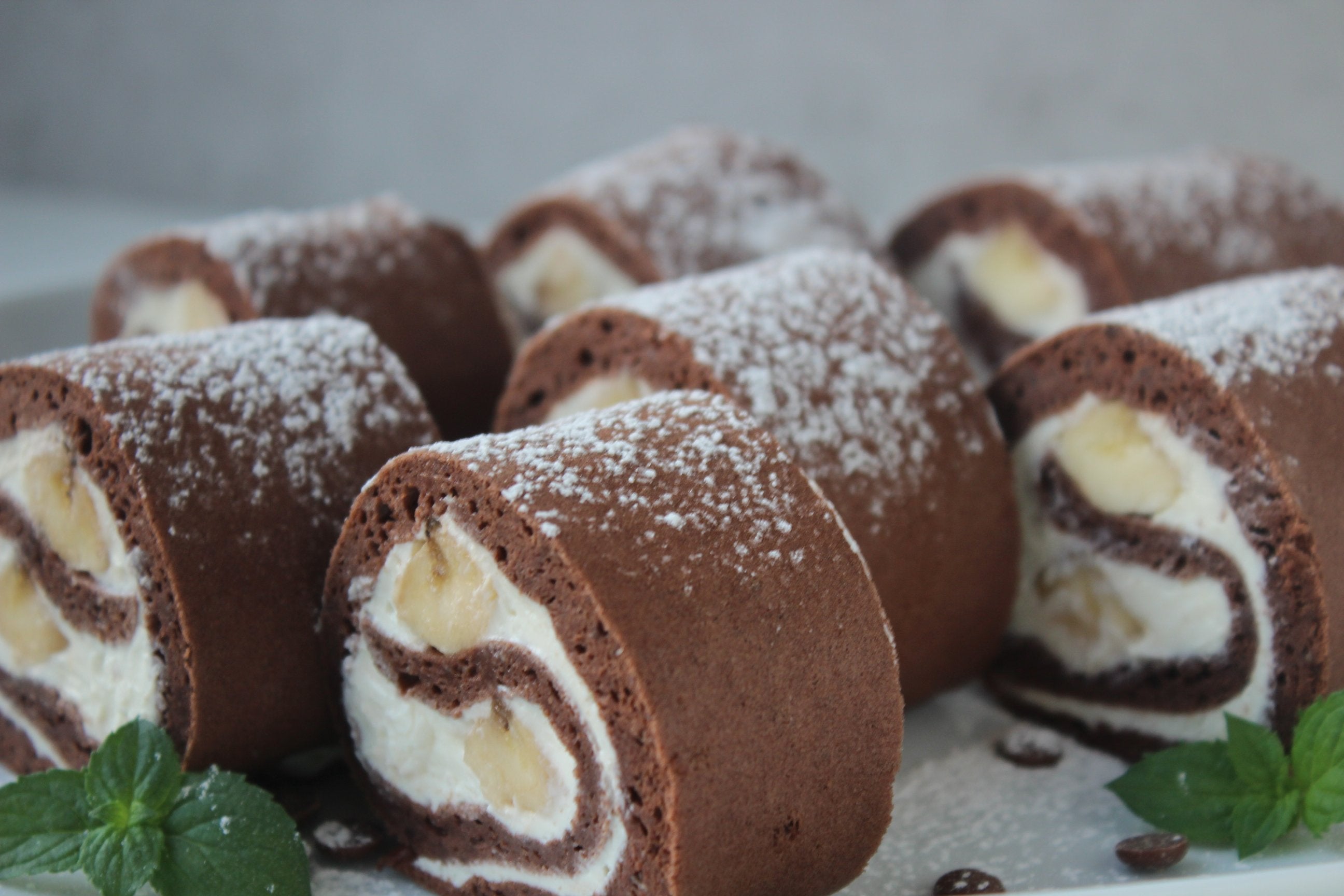 Proteinreiche Schoko Bananen Biskuitrolle
