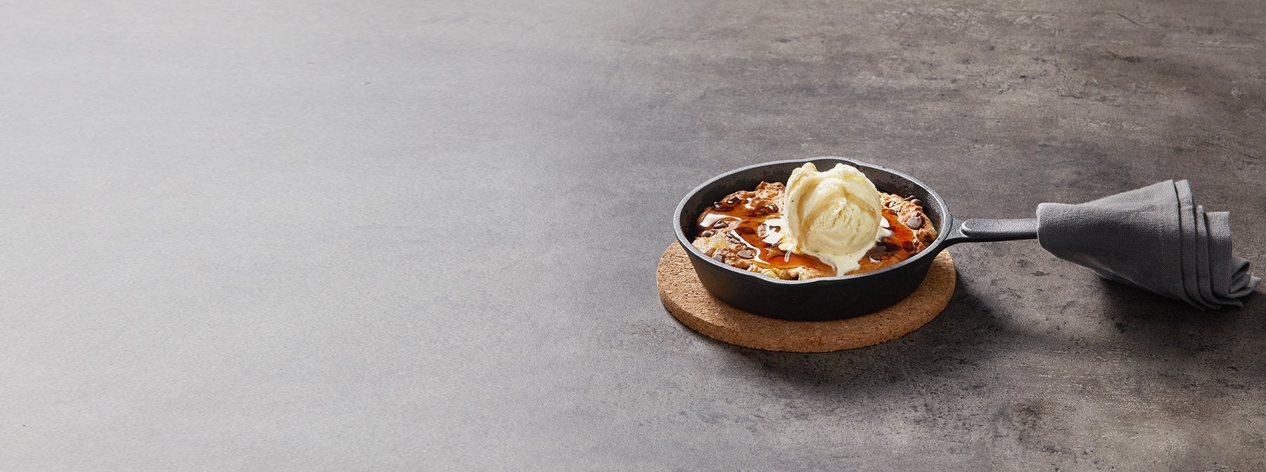 Garniere deinen proteinreichen Cookie Dough mit einer leckeren Eiskugel und gib noch ein paar großzügige Spritzer zuckerfreien Sirup dazu. Guten Appetit!