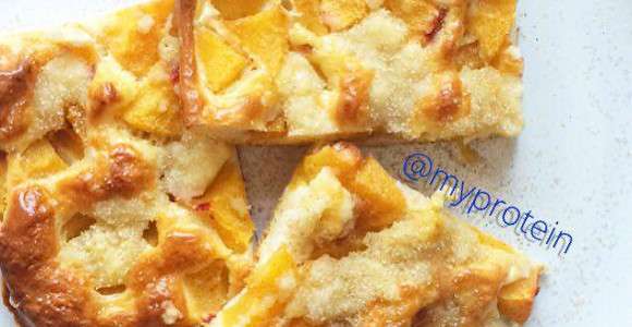 Proteinricher Pfirsich Blechkuchen