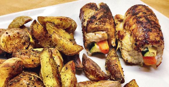 Putenrouladen mit Kartoffelspalten | Gesunde Fitness Küche