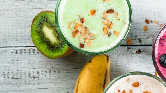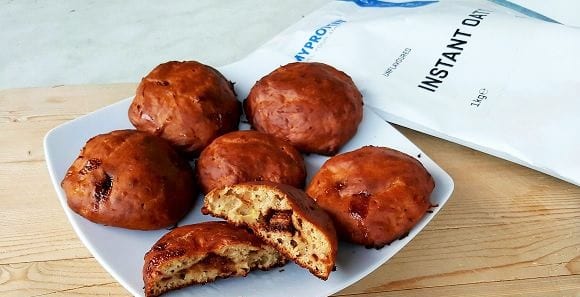 - Wenn du die Zutaten miteinander verrührt hast, gibst du noch die Instant Oats, Whey und Backpulver dazu.