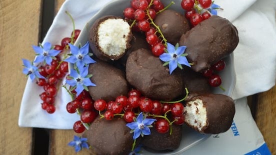 - Zuerst schmilzt du die Schokolade in einem mikrowellen-geeigneten Gefäß.