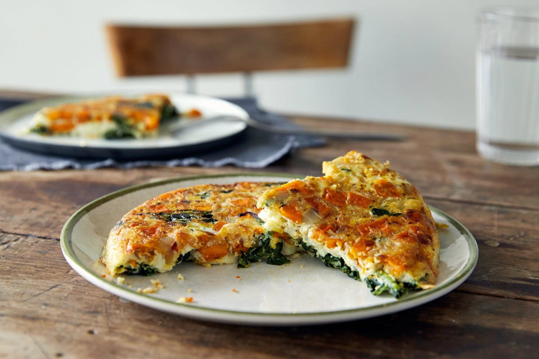 Diese Süßkartoffel-Frittata ist das perfekte Gericht für die Mittagspause (oder ein schnelles Abendessen unter der Woche), um die Gemüsezufuhr auf schmackhafte Art und Weise zu boosten. Und da sie viel Protein enthält, eignet sie sich auch ideal als Post-Workout Mahlzeit.