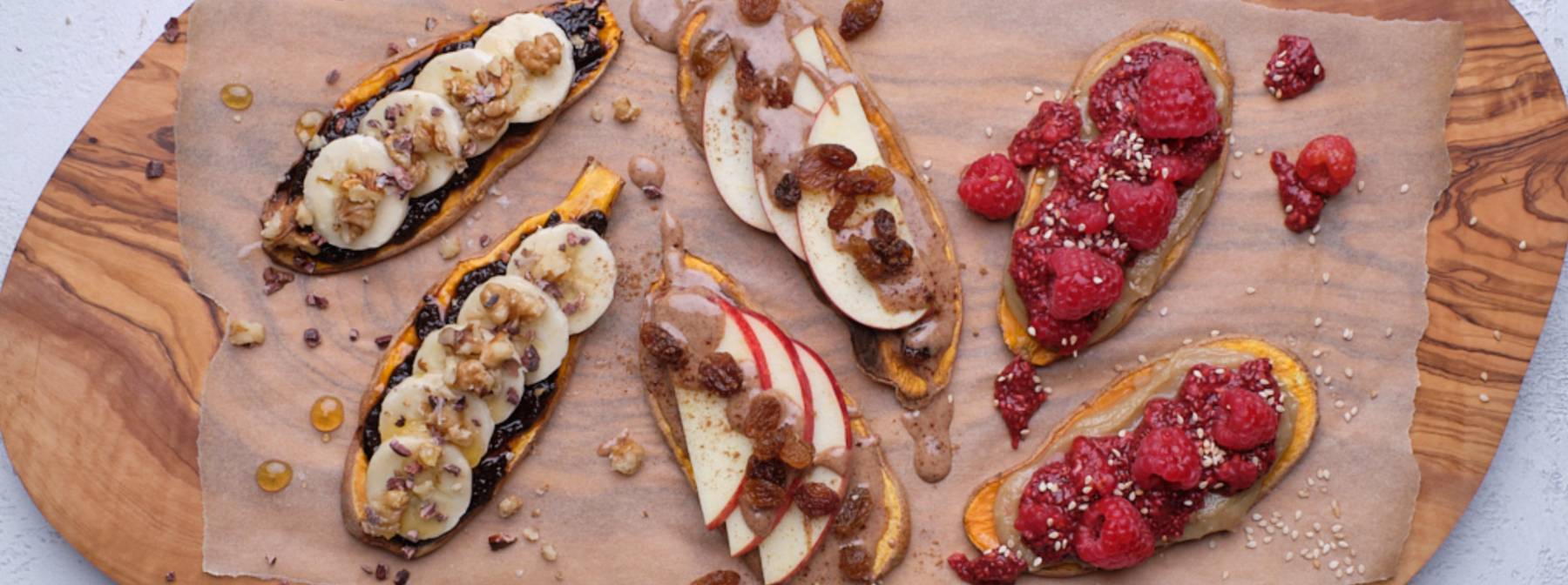Mache dich also bereit für diese knusprigen Süßkartoffel-Toast, belegt mit Äpfeln sowie Bananen - und drapiert mit köstlicher Mandelbutter.