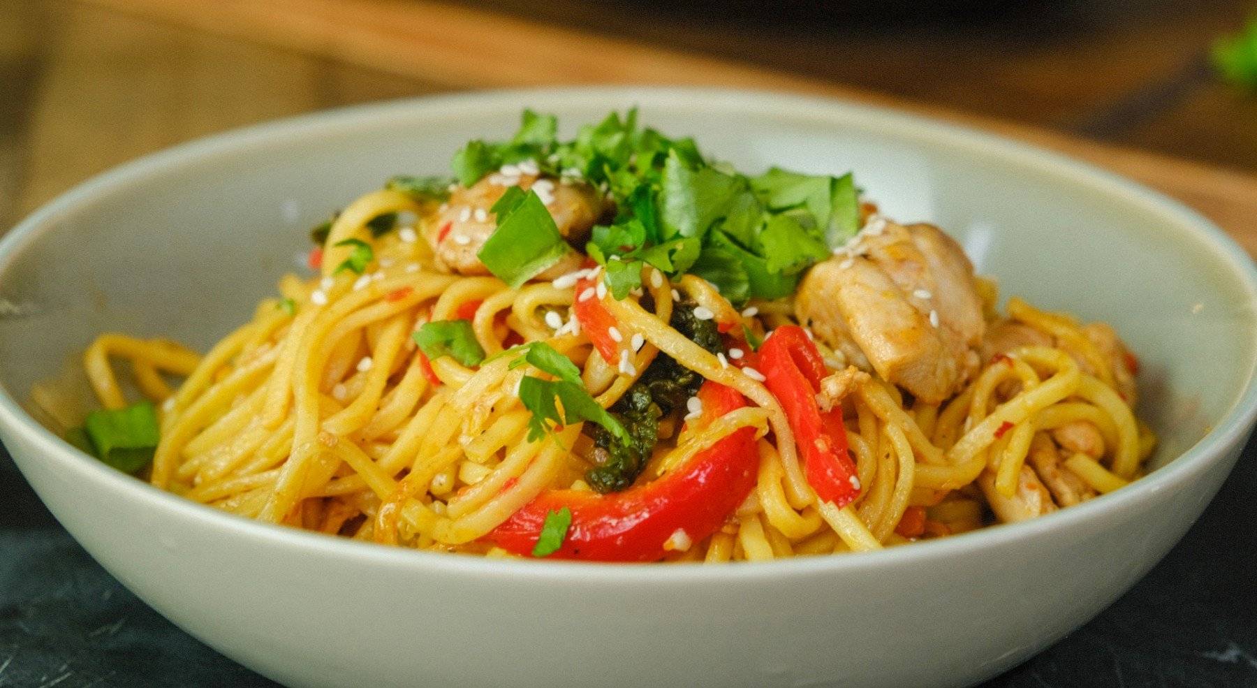 - Genieße deine Sweet Chilli Nudeln mit Hähnchen.