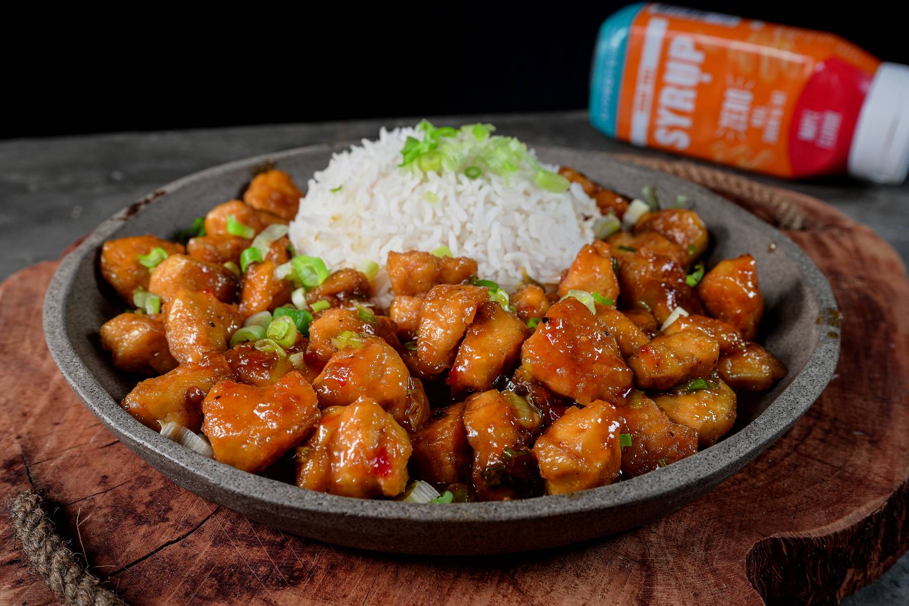 Für die Sauce vermengst du alle Zutaten miteinander und gibst sie zum Tofu. Koche alles (auf kleiner Flamme) bis die Sauce leicht eindickt. Hebe die Frühlingszwiebeln unter und serviere alles mit Basmati-Reis. Fertig!