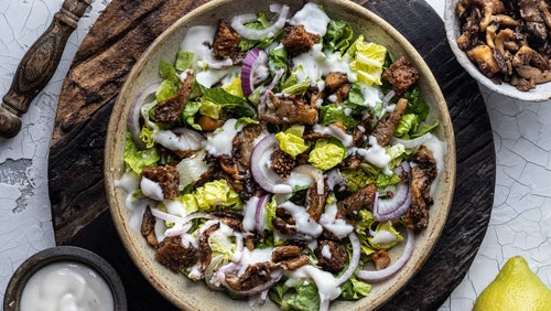 Veganer Caesar Salat mit „Austern-Huhn“ und Croutons