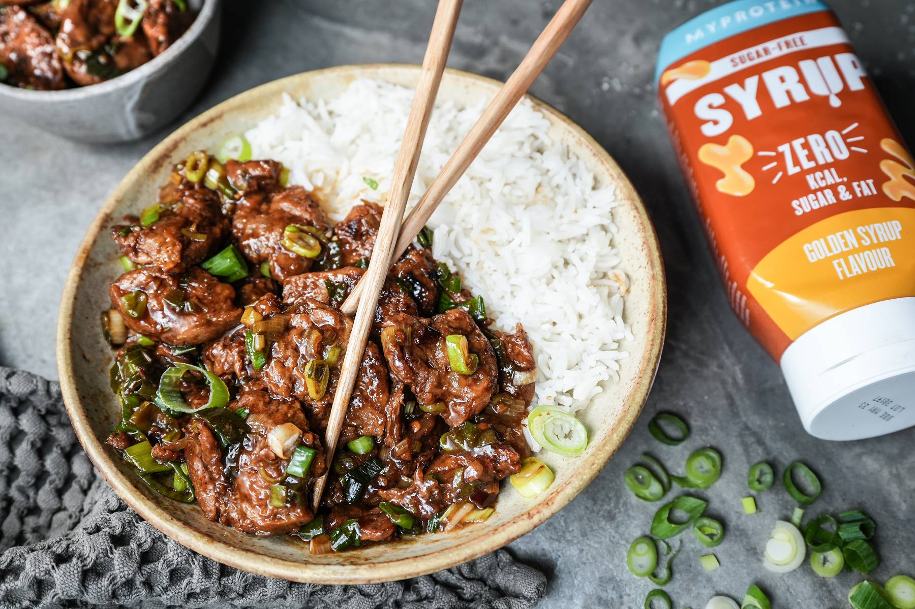 Gib das Wasser, Reisessig, Austernsauce, den zuckerfreien Ssirup und Chiliöl hinzu und köchle alles auf kleiner Flamme für 8 Minuten.