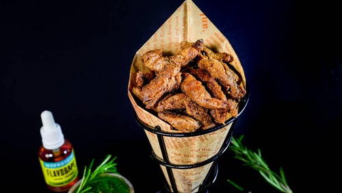 Gib die Hähnchenteile in die Heißluftfritteuse und bestreiche jedes Stück mit etwas Kokosöl. Frittiere die Hähnchenstücke 15 Minuten lang in der Heißluftfritteuse (beachte: alle Heißluftfritteusen sind leicht unterschiedlich, prüfe also vor dem Servieren, ob das Hähnchen durchgebraten ist. Serviere es mit gehacktem Schnittlauch als Deko.