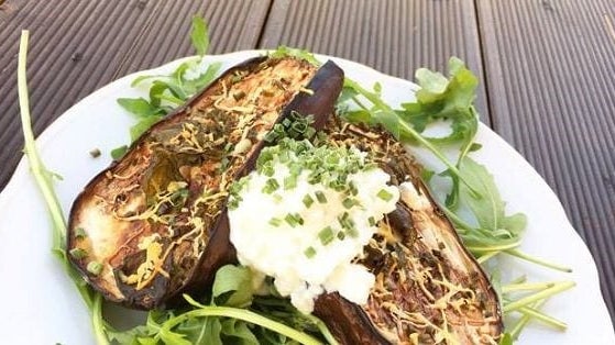 - Halbiere die Kirschtomaten, lege diese auf ein Backblech (bitte Backpapier verwenden) und mit Olivenöl und Kräutern besprenkeln. Für 10-15 Minuten in den Backofen geben.