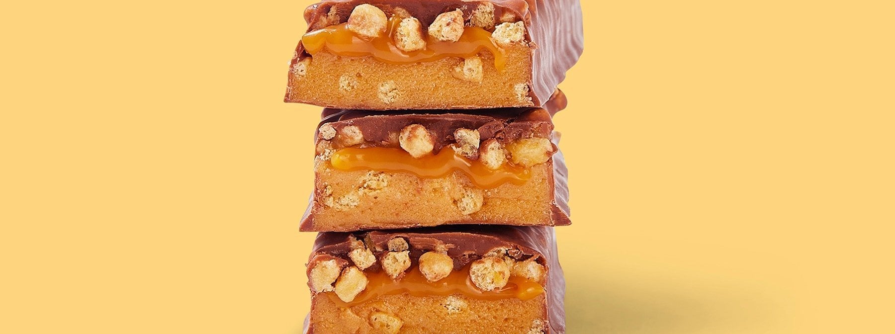 Es handelt sich um einen dreischichtigen Riegel mit einem Karamellkern, umhüllt von Schokolade und gekrönt von Crispies, die für den besonderen Extra-Crunch sorgen. Ideal, um den Heißhunger auf Süßes zu stillen und der perfekte Begleiter zur Kaffee- und Teepause.