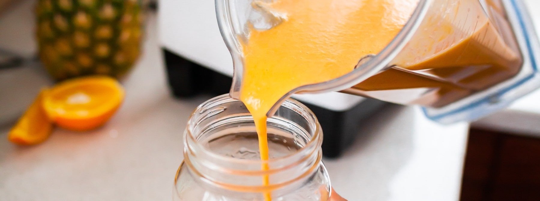 Matcha sorgt, zusammen mit Ingwer und Pfirsichen, für einen erfrischenden Start in den Tag. Die Pfirsiche sind zudem eine gute Quelle für Vitamin C. Zwei Pfirsiche enthalten weiterhin 4g Ballaststoffe.
