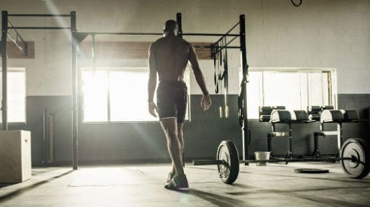 Sobald die Box die richtige Höhe besitzt, gehe an die Hantel und hebe diese vom Rack, wie bei einem Backsquat. Ziehe die Stange eng an deinen Rücken, als würdest du versuchen, sie um deine Schultern zu biegen und nimm einen etwas weiteren Stand als normal mit der Box hinter dir ein. Baue bei der Squatvorbereitung Spannung auf, indem du deine Füße in den Boden drückst.